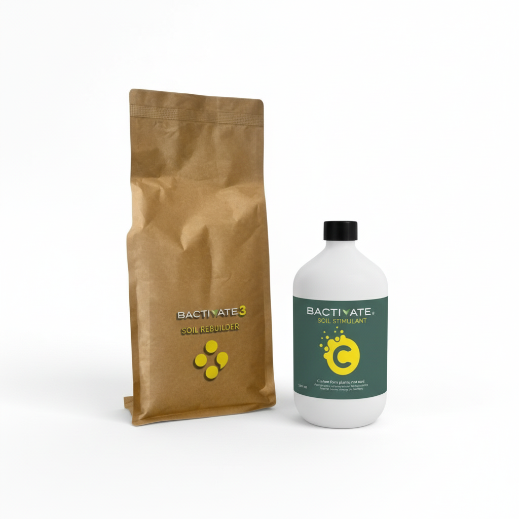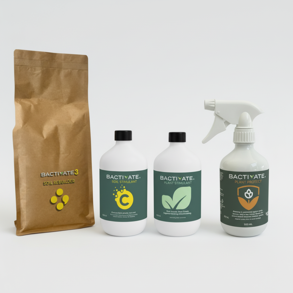 Four essential Bactivate products that work together to rebuild soil, strengthen roots and support healthier plant growth.